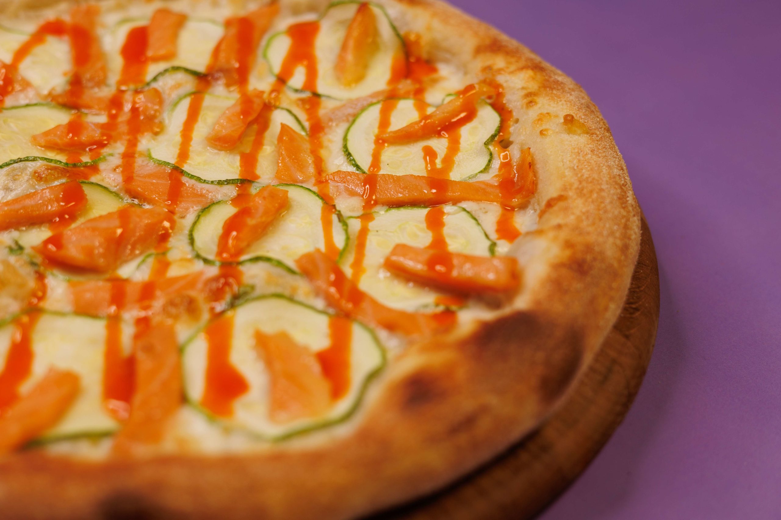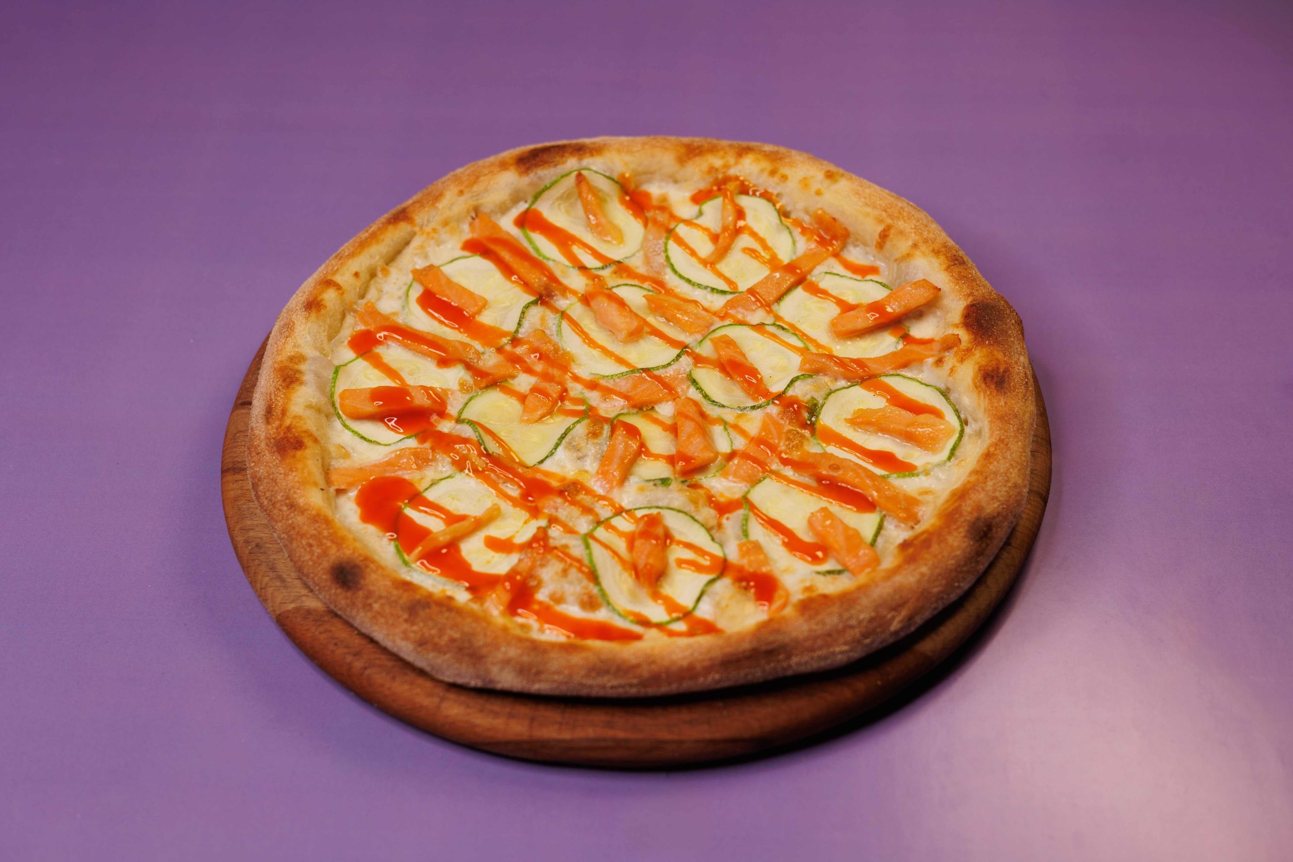 Состав: лосось, цукини, сыр моцарелла, сливочный соус, воздушное тесто. Поливается соусом «сладкий чили»