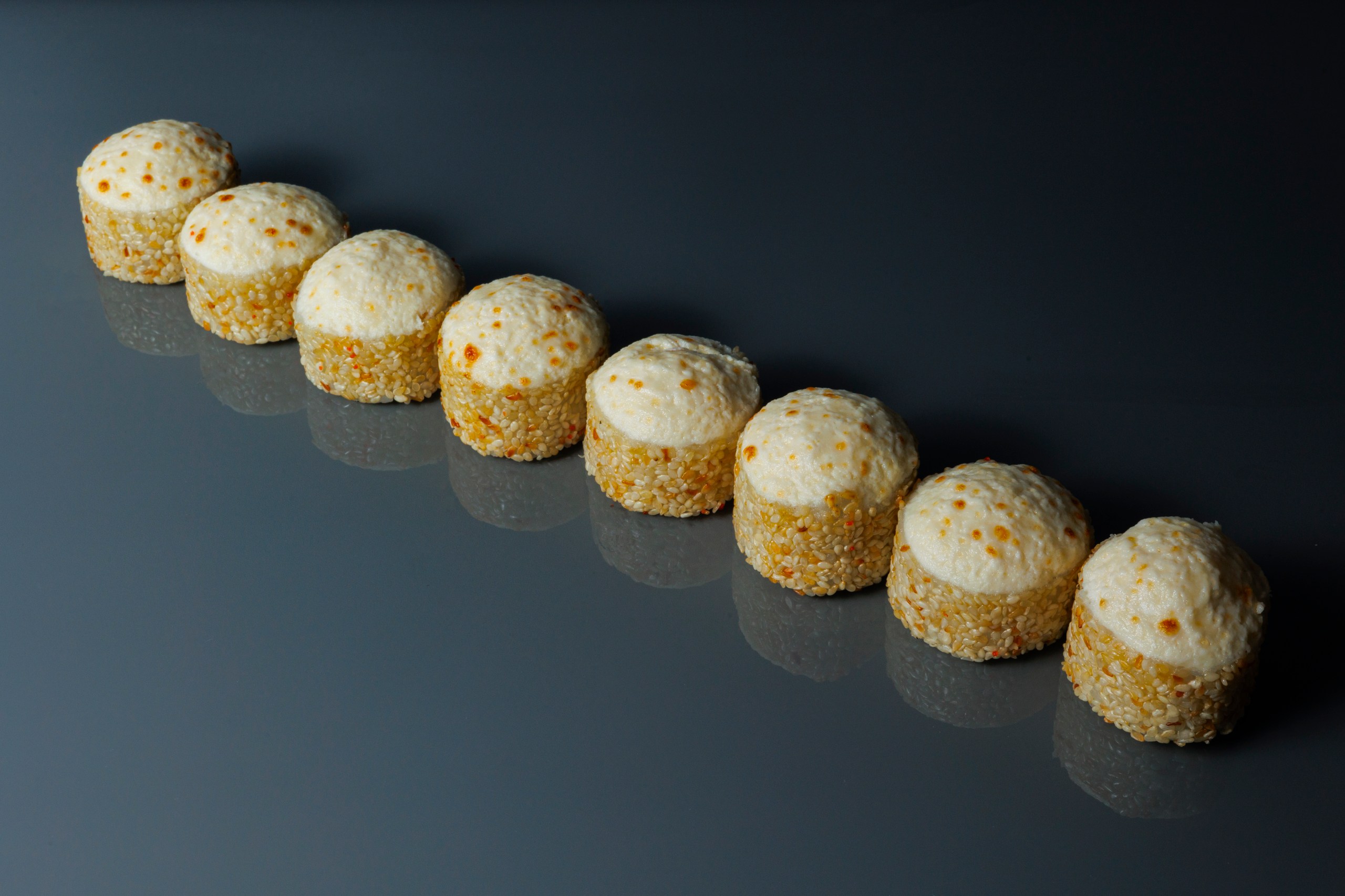 Обжаренный кунжут, сырная шапка, креветка тигровая, огурец.